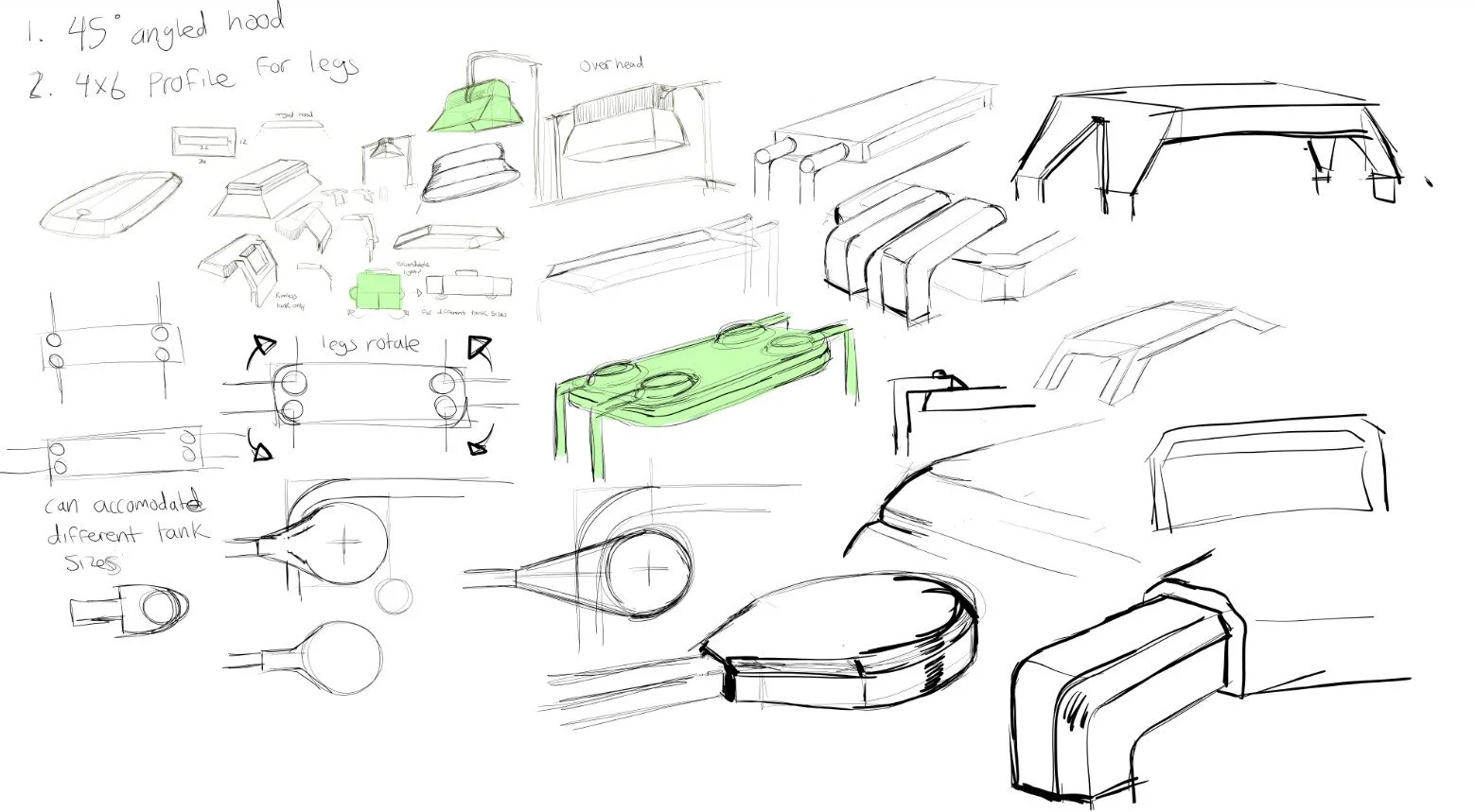 In the new position with a flat hood, unfocused light extends past the edges of the tank, resulting in a bright glare and loss of valuable light